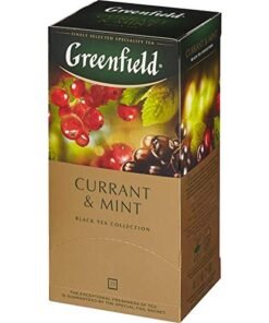 - Tea Greenfield Currant and Mint black long leaf 25 bags – wonderful tea with a taste of bright and warm summer! Currant bouquet brings great touches to the deep taste of black tea. The refined sweetness of black currant echoes the light sourness of red, and spicy mint completes this amazing composition, adding to the drink summer freshness and coolness.