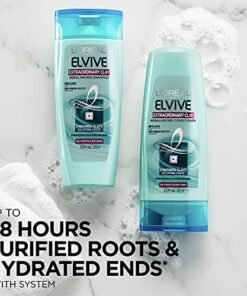 Details: L’Oreal Paris Extraordinary Clay conditioner with 3 Refined Clays instantly purifies oily roots and hydrates dry lengths. This lightweight conditioner for oily roots and dry ends leaves hair looking beautifully fresh and clean from root to tip for up to 48 hours.* For best results, use L’Oreal Paris Extraordinary Clay pre-shampoo hair mask, shampoo and conditioner. • Conditioner for oily roots and dry ends • Up to 48HR purified roots plus hydrated ends* • For oily to combination hair • Fresh flowing hair * Based on using the complete system of pre-shampoo treatment, shampoo, and conditioner. Apply after using Extraordinary Clay Rebalancing Shampoo. Leave on for 1-3 minutes. Rinse. For longer lasting freshness use Extraordinary Clay Dry Shampoo. Suitable for color-treated hair.