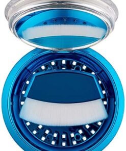 - Buff on powder over face and neck to even out complexion. For the most even application, be sure to tap excess powder from brush before applying.