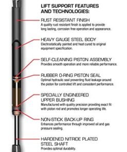Details: Lift supports are pressurized cylinders that are used to support hoods, hatches and rear window glass in automotive applications. Lift supports are also used in many non-automotive applications. Each Strongarm lift support is custom engineered, and manufactured beyond industry standards to provide smoother operating, and longer lasting performance. Lift supports should be replaced in pairs to ensure safe, reliable support of your hood, hatch, or liftgate.